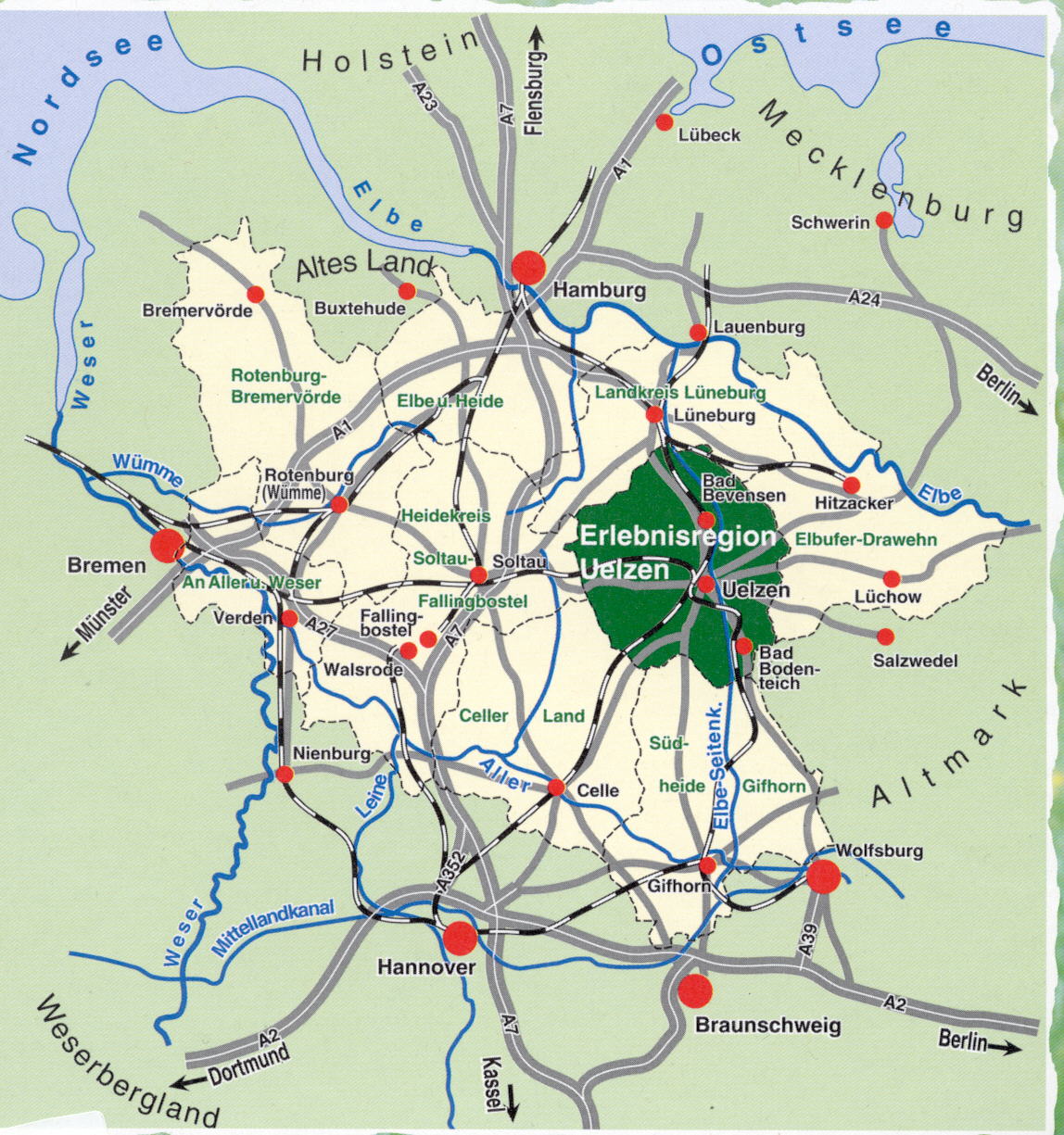 Sie erreichen uns von Uelzen über die Landesstraße L270 in Richtung Bad Bodenteich, in Wieren fahren Sie links ab in Richtung Soltendieck und Suhlendorf, über Drohe und Könau. Oder von Uelzen über die B71 Richtung Salzwedel über Suhlendorf.
